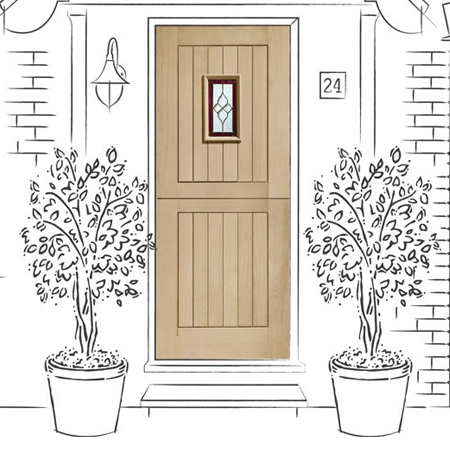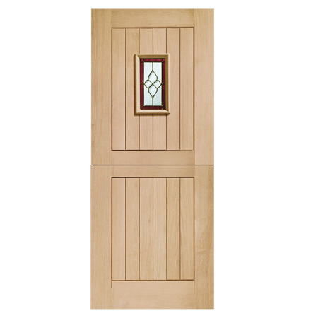 An attractive triple glazed stable style door in a boarded design with a small decorative glazed unit. A unique glass design really does make the Chancery Stable stand out from the crowd with it’s triple glazed water design surrounded with brass caming and an eye-catching maroon border. All the benefits of a stable door coupled with a truly stunning design makes the Chancery Stable the choice for the more discerning homeowner who is intent on making a real statement.